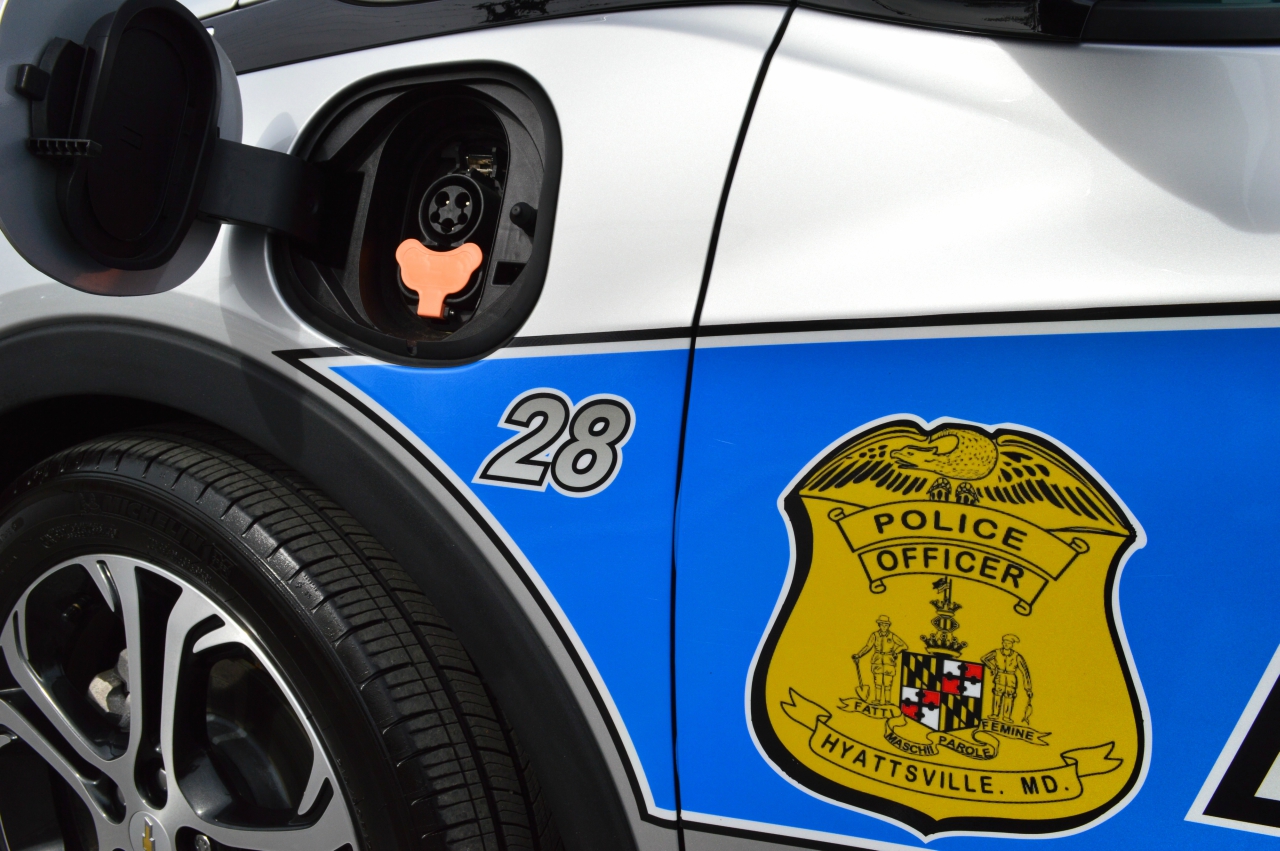 The Hyattsville Police Department undertook a major project to acquire an electric vehicle and convert it into a fully functioning patrol vehicle. The initiative was spearheaded by Sgt. Richard Hartnett, an avid electric vehicle enthusiast, who identified an opportunity for the agency to acquire the vehicle through a special grant from the Maryland Energy Administration. Under the grant requirements, the department was allowed to trade in a deadlined cruiser in exchange for equivalent funding that would be applied towards the purchase of a brand new Chevrolet Bolt. In addition, the agency worked with the Electric Vehicle Institute of Baltimore to place Electric Vehicle Charging stations throughout the Town of Hyattsville as part of the Maryland Alternative Fuel Infrastructure grant project. The grant funded 12 EV Charging Stations, of which six (Level 2 chargers) are restricted to government vehicles, and four Level 2 and two Level 3 (DC Fast Charge) stations are all available to the public with no cost for usage.